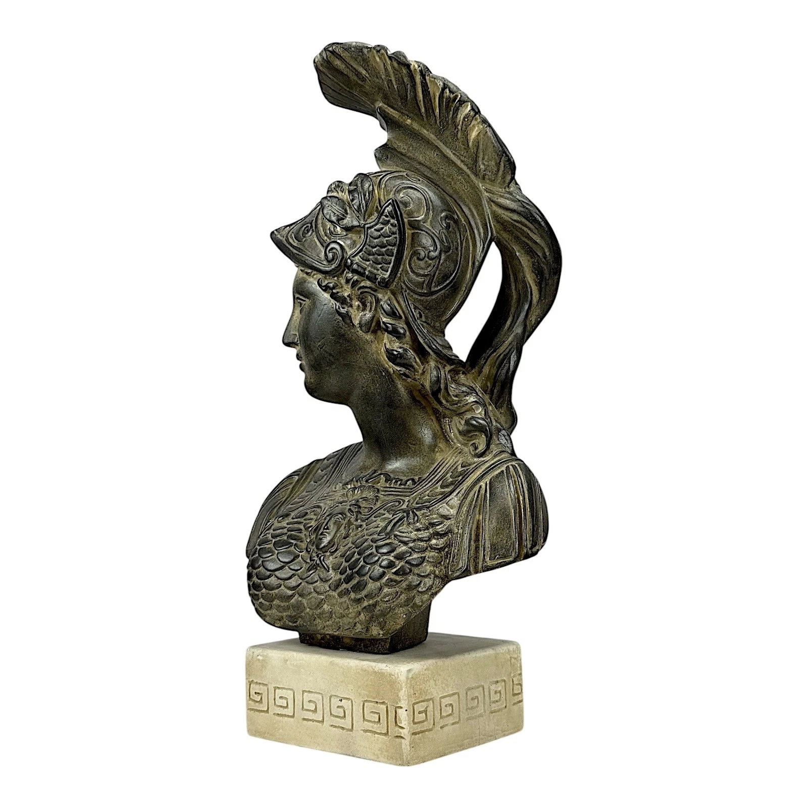 Celebrate the wisdom and strength of Athena (Minerva), the revered Greek and Roman goddess of wisdom, warfare, and crafts, with this stunning 13-inch bust sculpture. Crafted from eco-friendly molded plaster, this finely detailed statue captures the classical beauty and serene expression of the goddess, bringing a touch of ancient mythology to any room.