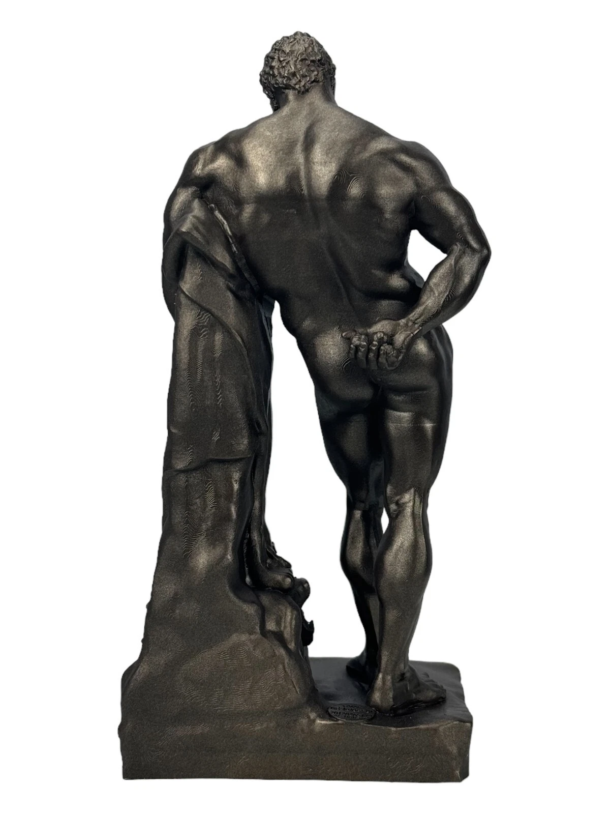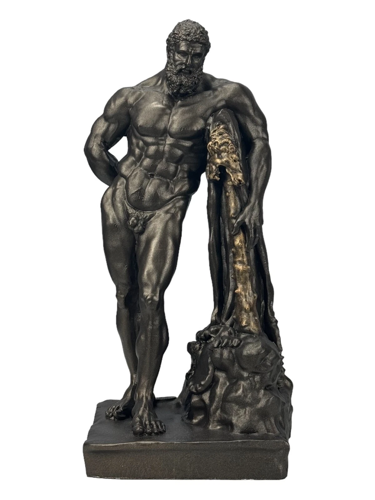This Farnese Hercules (Heracles) sculpture is a stunning licensed reproduction of the classical masterpiece, meticulously handmade in Greece using high-quality cast marble with a rich bronze-colored finish. Measuring 13 inches tall, this medium-sized statue captures the heroic strength and mythological presence of Hercules in exquisite detail.
